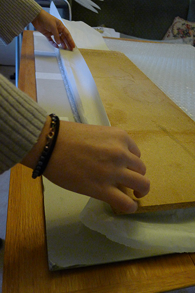 1. Measure artwork, and cut bubble wrap to the size of the artwork width and twice the length, allowing an extra 5cm for the width on the edges, and an extra 10-15cm for a flap at the top of the bag (flap size will vary depending on size of bag)